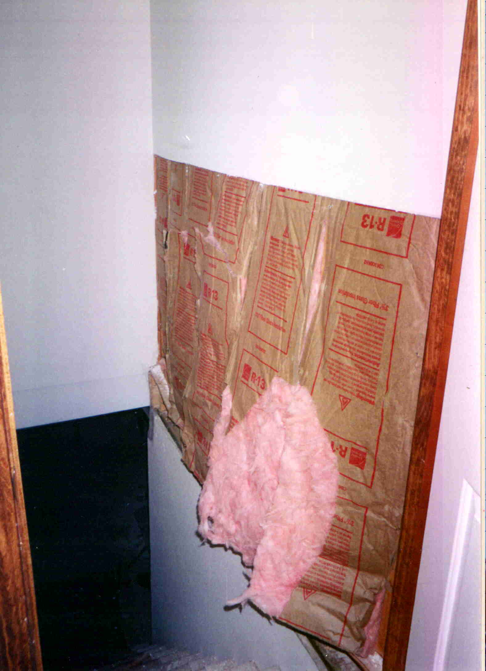 Damaged garage wall as seen from inside of house